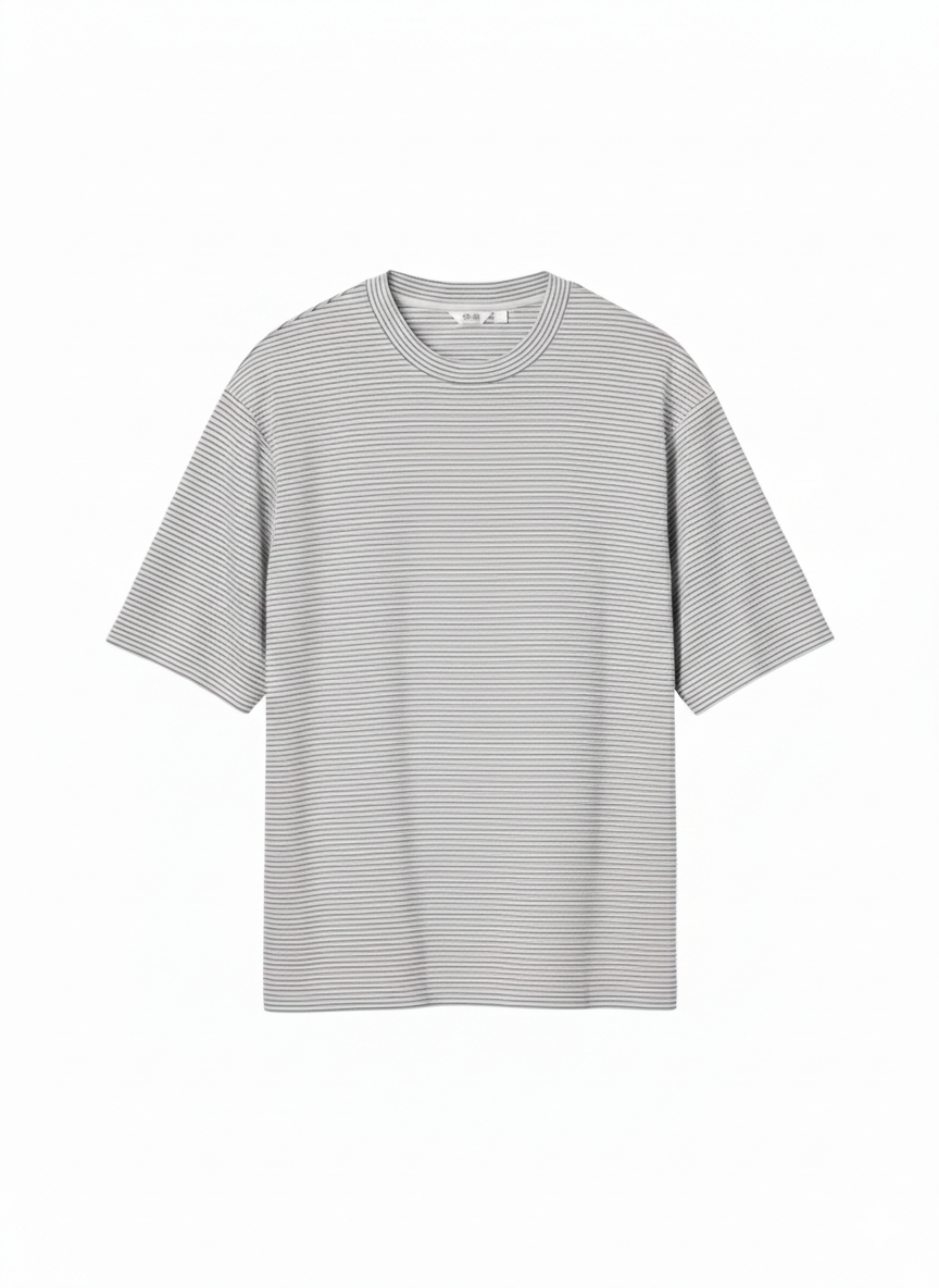 เปลี่ยนลุคธรรมดาให้ดูมีเทสด้วยเสื้อยืดคอกลมลายทางดีไซน์มินิมอล มาในทรง Oversized ที่กำลังเป็นที่นิยม โดดเด่นด้วยลวดลายทาง